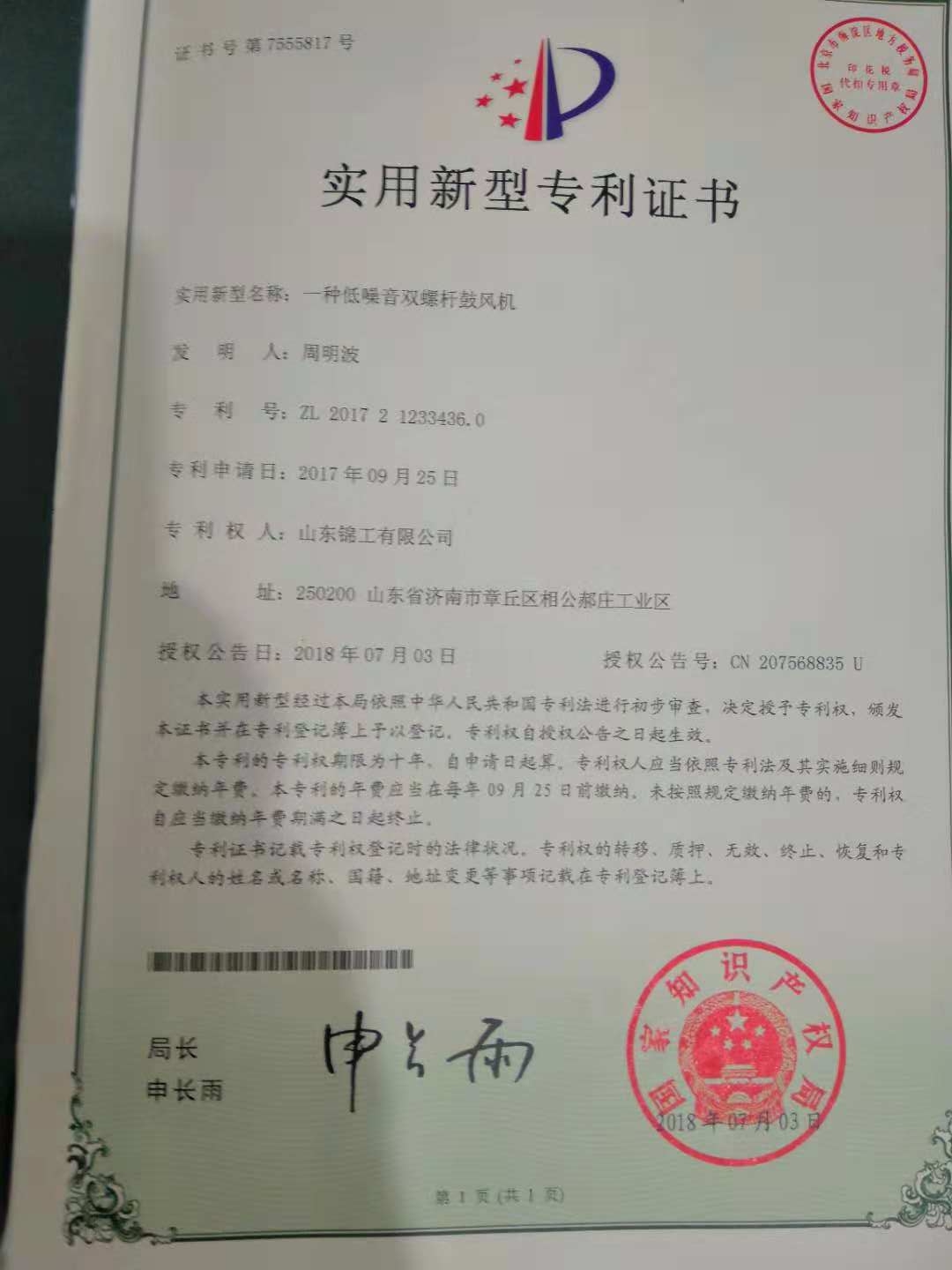 日前,广东会风机的“一种双螺杆鼓风机” 、“一种紧凑型罗茨鼓风机” 、 “罗茨风机选型软件” 等获国家知识产权局颁发的专利及软著证书。