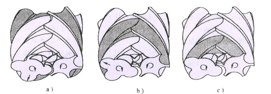 气体经吸气口进入转子齿间容积,随着转子的转动,齿间容积不断扩大,当齿间容积达到最大时,齿间容积与吸气口断开,吸气过程结束。