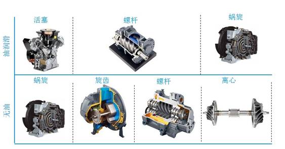 空压机(英文为:air compressor)是气源装置中的主体,它是将原动机(通常是电动机)的机械能转换成气体压力能的装置,是压缩空气的气压发生装置,是利用空气压缩原理制成超过大气压力的压缩空气的机械。按照压缩空气的方式不同,空压机通常分为两大类,一类是容积式,另一类是动力式,又可按其结构的不同分为以下几种形式: